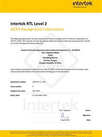 • 中國船級社產(chǎn)品檢測和試驗機構(gòu)認可證書(有害物質(zhì))正面