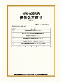 • 機械工業(yè)汽車電子電氣產(chǎn)品質(zhì)量監(jiān)督檢測中心機構(gòu)認定-資質(zhì)證書