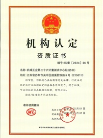 • 機械工業(yè)第二十六計量測試中心站(蘇州)機構(gòu)認定資質(zhì)證書