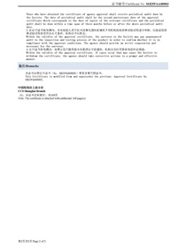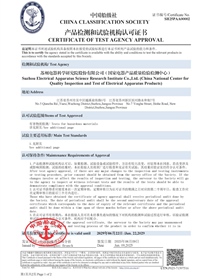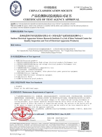 • 中國船級社產(chǎn)品檢測和試驗機構(gòu)認可證書(電器產(chǎn)品)正面