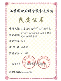 • 江蘇省電力科學技術進步獎三等獎