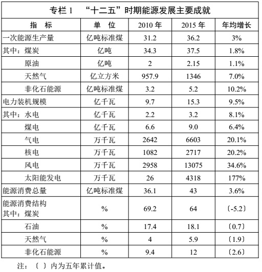 專欄 1 “ 十二五” 時(shí)期能源發(fā)展主要成就