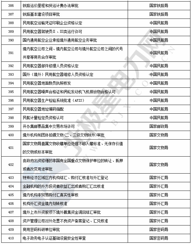 (注:國務院決定取消的491項行政審批事項中,公布410項,其余為涉及修法事項及涉密等事項。)