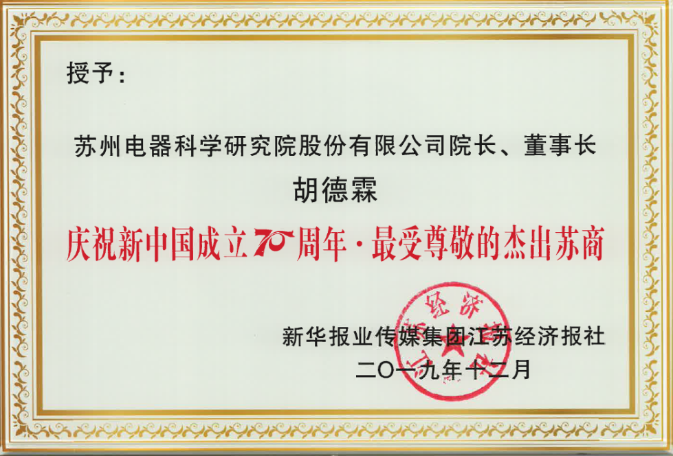 公司致力于中國電器檢測事業,始終堅持自主研發、自主建造,經過55年的建設和發展,目前已發展成為我國輸變電能源裝備領域檢測條件最完備、技術能力最強、檢測規模最大的獨立第三方科研檢測認證機構之一,是我國電器檢測行業的技術領導者之一。胡德霖院長先后數十次被國家、省市等有關部門授予“國家科學技術進步獎二等獎”、“河北省科學技術獎科技進步獎一等獎”、“江蘇機械工業科技進步獎一等獎”等獎勵及“全國優秀科技工作者”、“江蘇省優秀企業家”、“全國機械工業優秀企業家”等榮譽稱號。