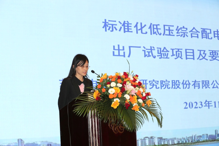 其他技術專家包括中國能源建設集團江蘇省電力設計院有限公司王旗主任分享了技術報告《標準化低壓綜合配電箱設計方案介紹及柜體加工要點》;蘇州電器科學研究院股份有限公司低壓實驗室韓美麗主任分享了技術報告《標準化JP柜出廠試驗項目及要求》;浙江方圓電氣設備檢測有限公司質量負責人黃芳副總分享了技術報告《標準化JP柜出廠試驗設備配置及要求》以及鈦和認證(上海)有限公司劉開成副總分享了技術報告《提供低碳綠色支撐服務 助力雙碳戰(zhàn)略目標實施》等,給標準的全面實施提供了全方位、多維度的解讀和執(zhí)行。