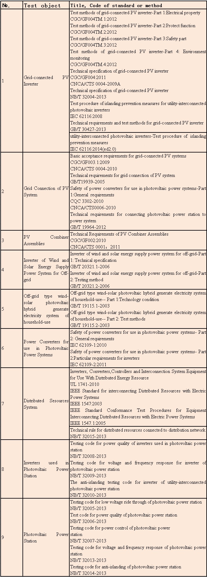 • PV laboratory is equipped with anti-islanding test device, high precision and programmable DC power source (PV simulator) system, and PV array I-V characteristic testing meter, etc. We could provide customers at home and abroad with all items test towards PV products, including PV group string current inspection, fire hazard testing and residual current type testing, islanding protection test, low voltage ride through test, and Phalanx insulation impedance test etc. to isolated inverter.