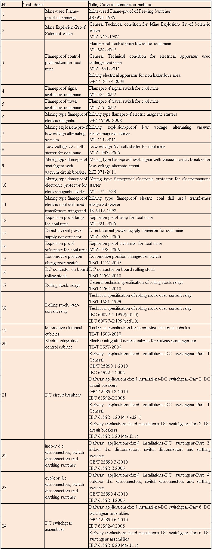 • The laboratory could carry out test for explosion-proof electrical category products in accordance with national, industrial and international standards. EETI furishs clients with testing service of electrical performance, climatope, EMC and IP grade for products such as mines/explosive-proof switch, starter, button, luminaire, supply convertor, radiotube and coal plants transformer integrated device.